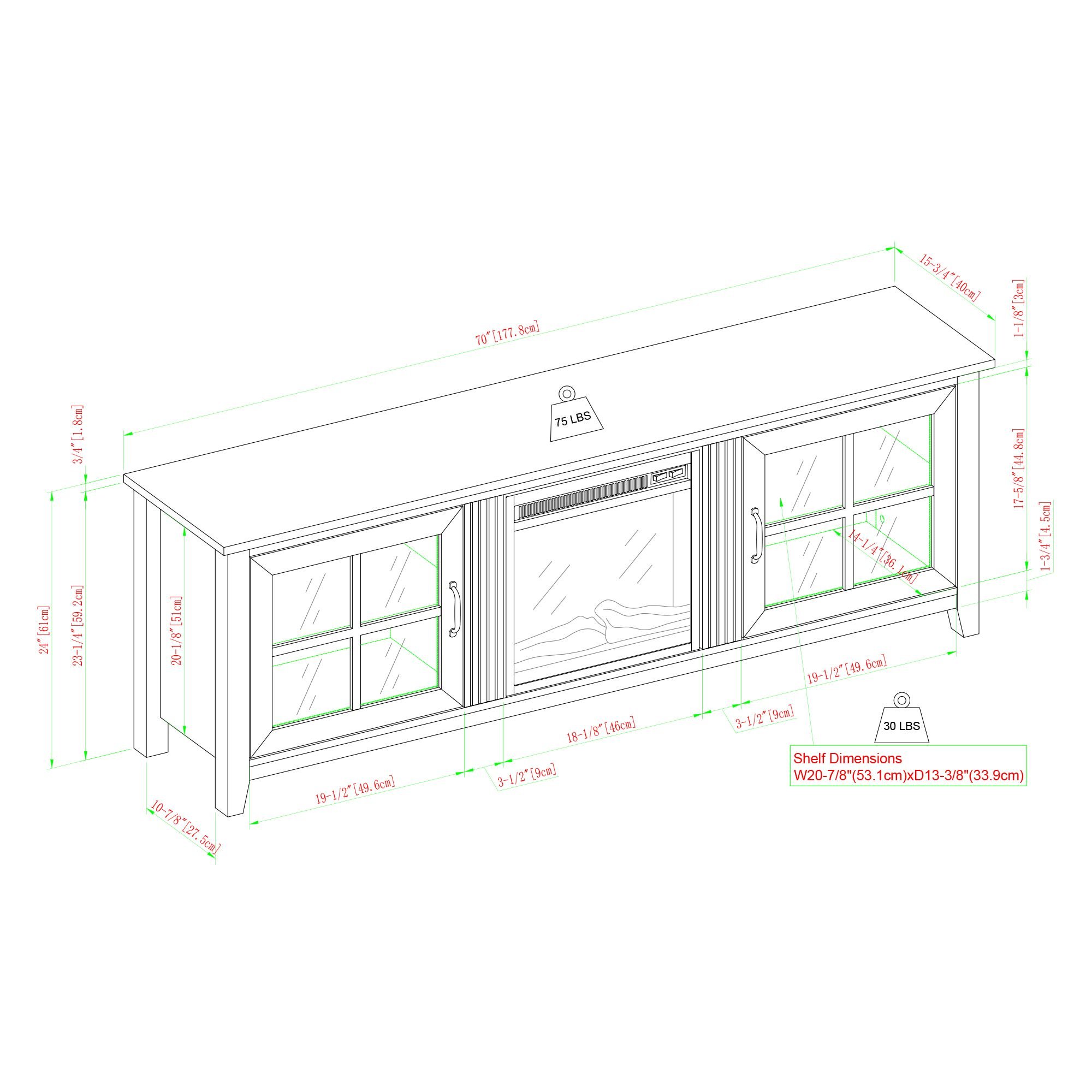 With window pane glass doors, cord management, adjustable shelves, and 18-inch electric fireplace unit