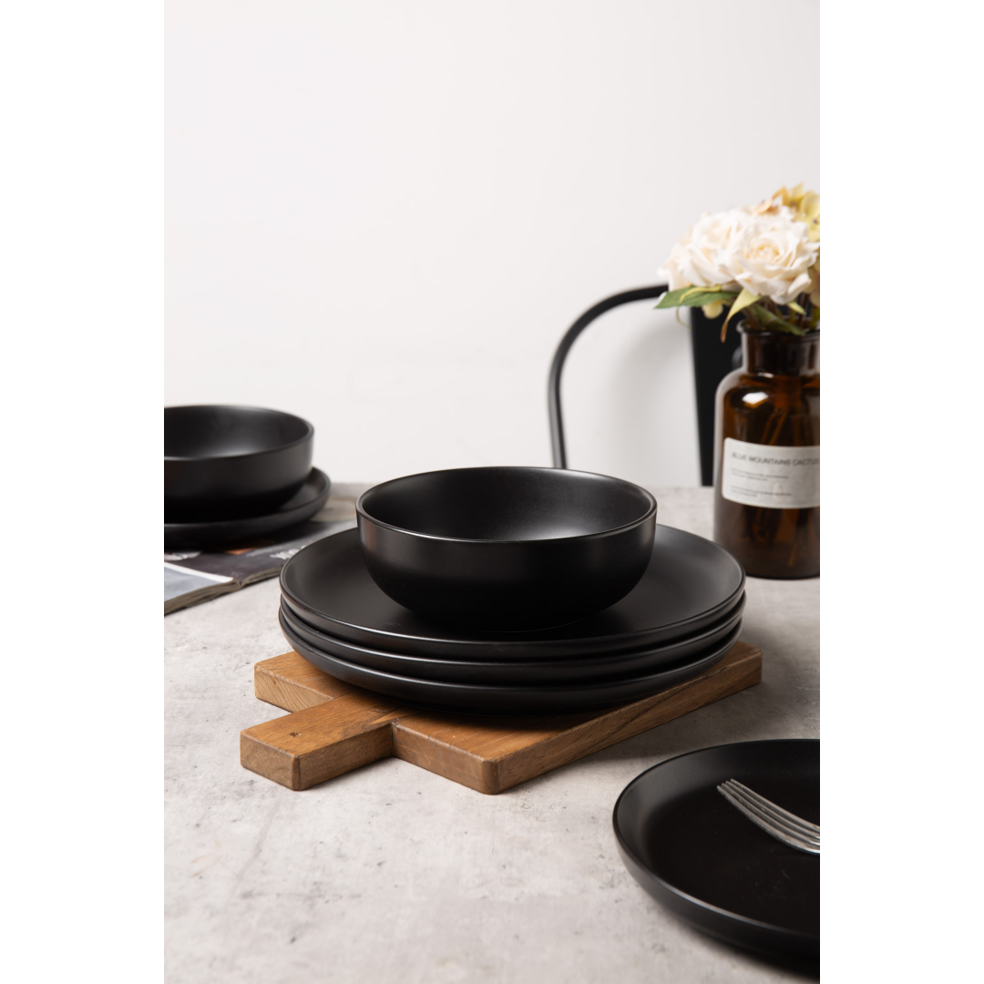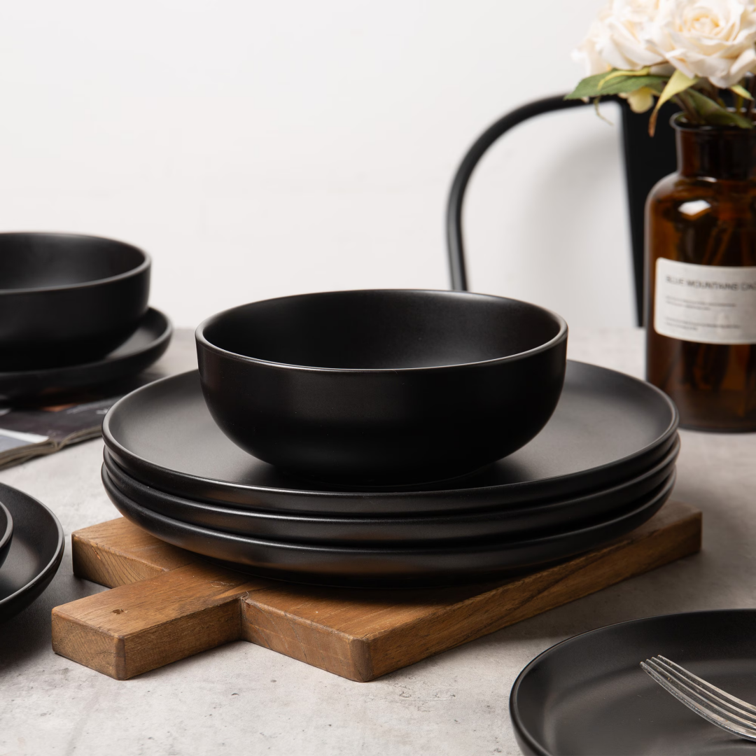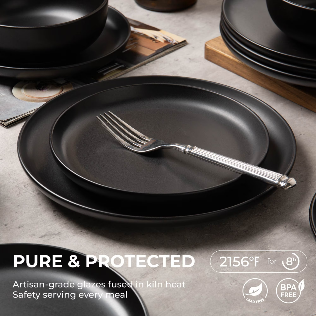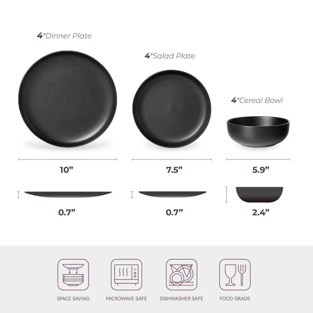 Product Name: 12-Piece Stoneware Dinner Plates Bowls Sets | Microwave & Dishwasher Safe | Non-Toxic Dinner Plates Bowls Set | Stackable Matte Glaze Kitchenware for 4